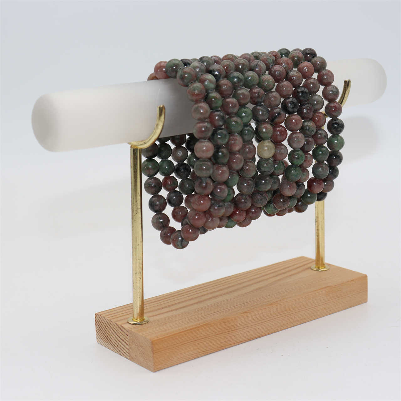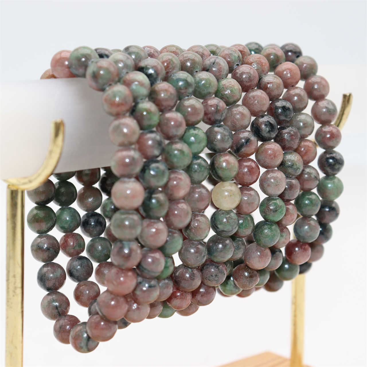 - Bracelets are a single strand with an elastic band. Multiple bracelets may be pictured to show variation in the natural stone.
